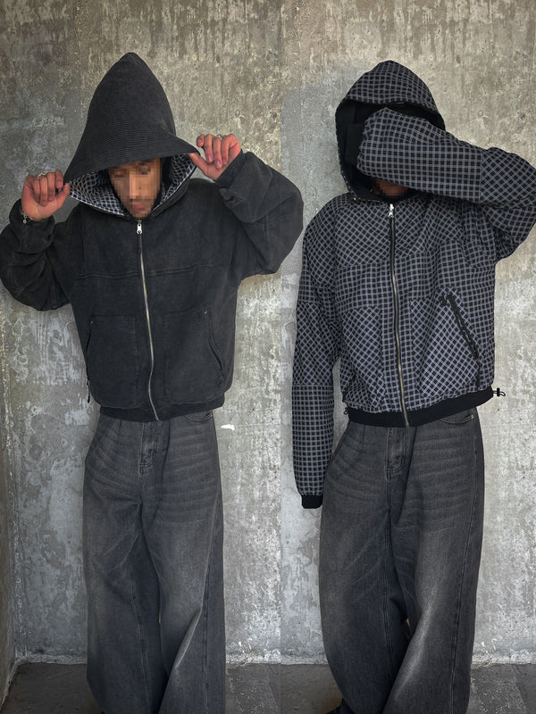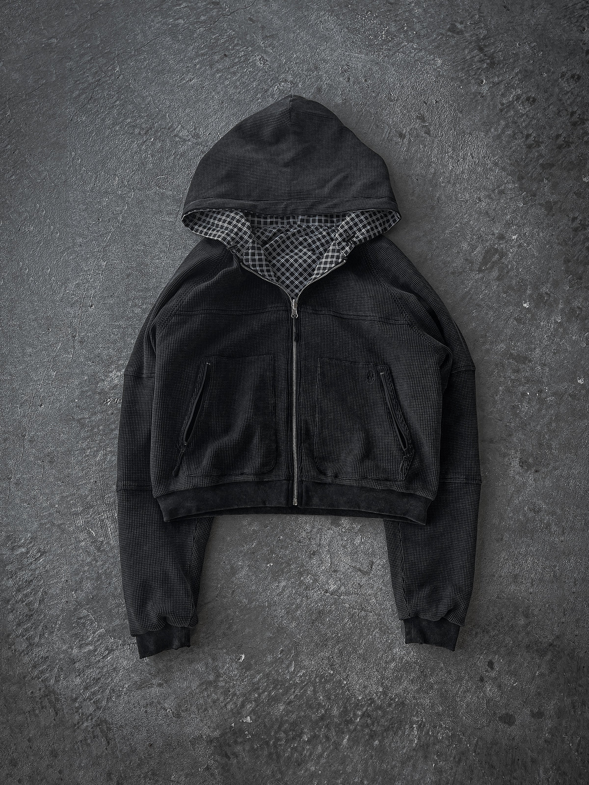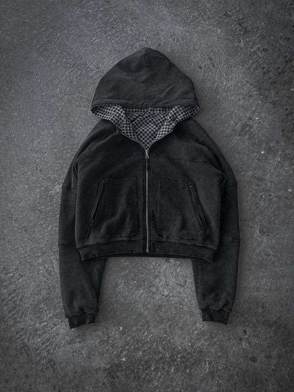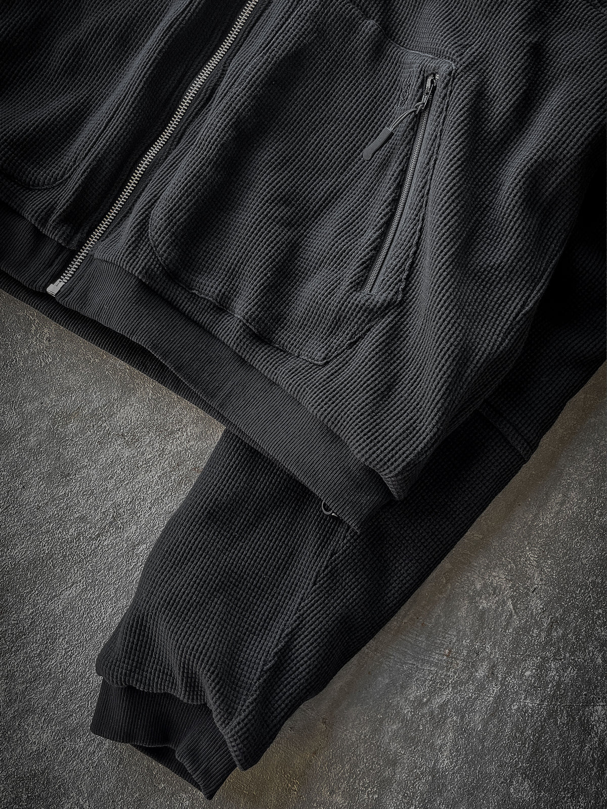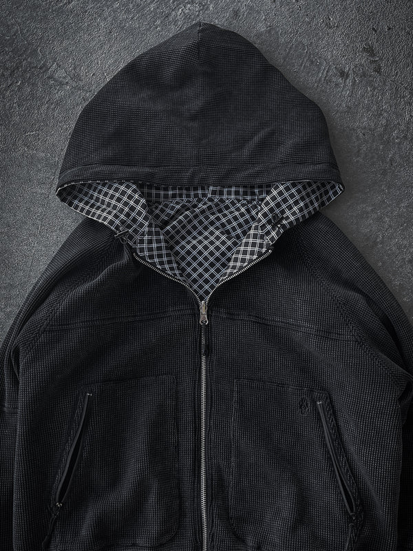 REVERSIBLE WAFFLE KNIT ZIPUP